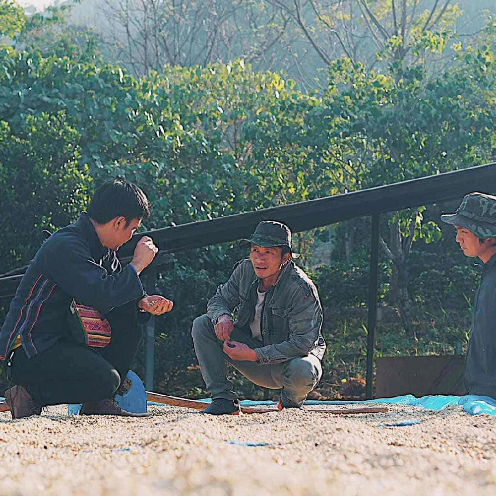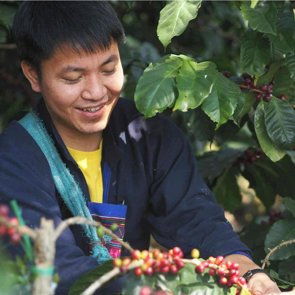 Coffee Friendship Offering: Our coffee story began over 20 years ago in the mountain hilltops of Doi Chang Village, Chiang Rai, Thailand, home to the Akha Hill Tribe. There, we met Jarern and the Wuiyue family, and a lasting friendship was formed.
