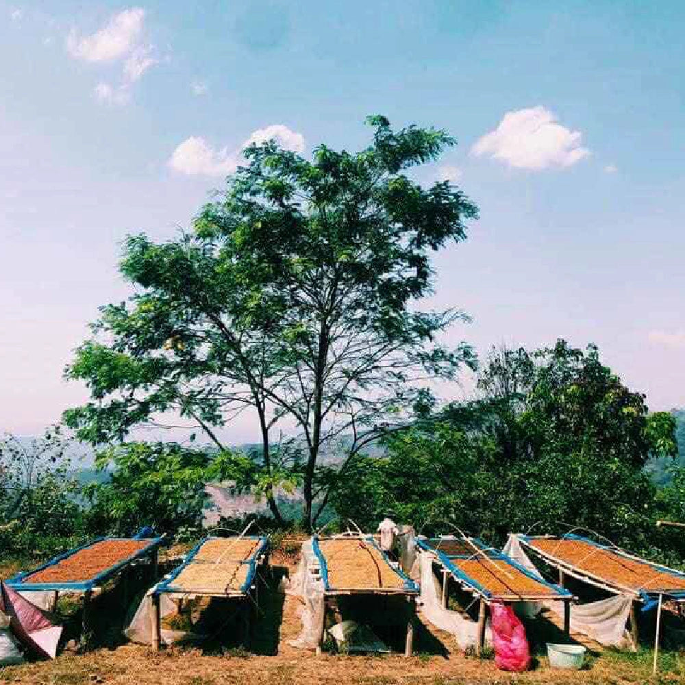 We’re proud to share this special Thailand Chiang Rai Natural Process coffee from Jarern and the Wuiyue family. Grown, harvested, and processed on their 47 acre personal family farm, only about 200kg of this natural process green coffee is produced each year, usually kept close and shared among friends.